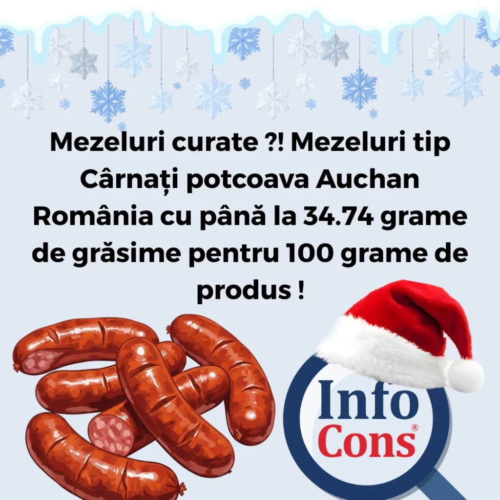Mezeluri curate ?! Mezeluri tip Cârnați potcoava Auchan România cu până la 34.74 grame de grăsime pentru 100 grame de produs !Adăugat la: 2026-01-03