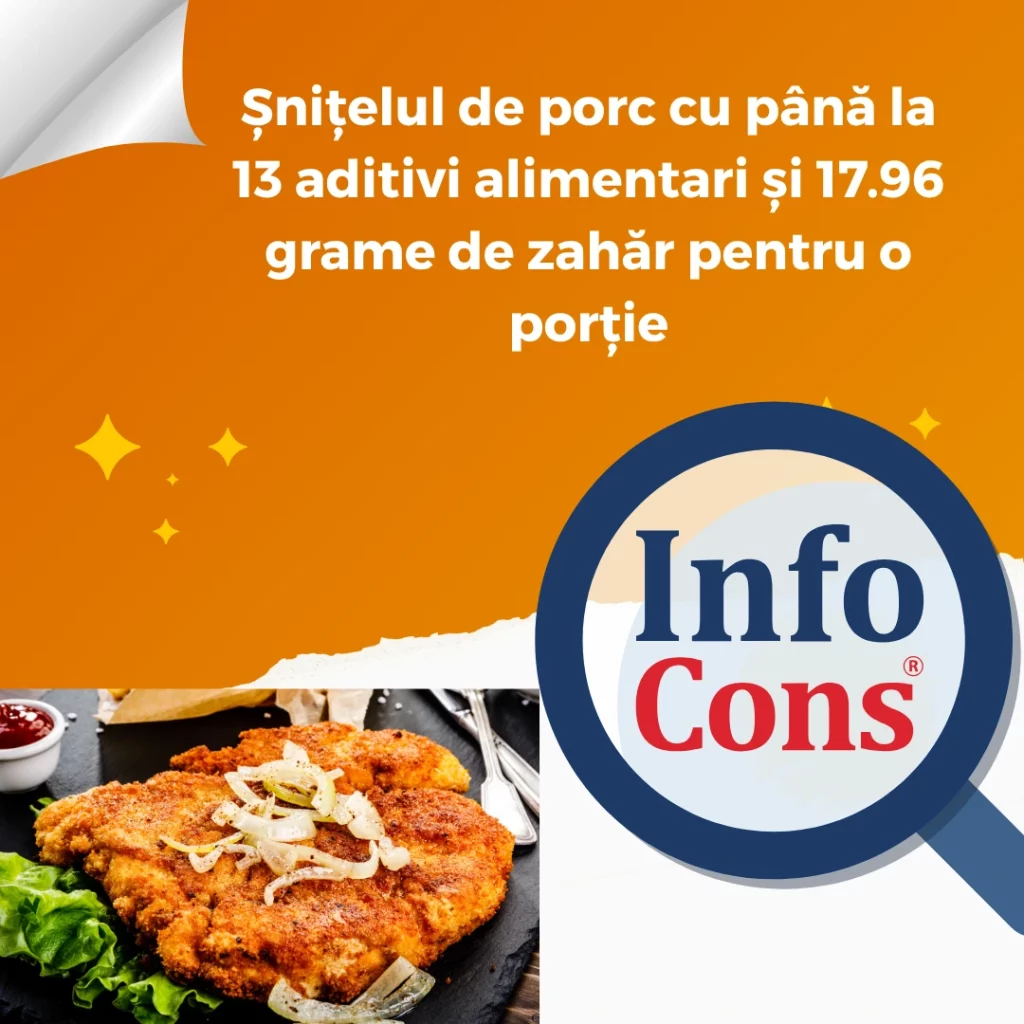 Șnițelul de porc cu până la 13 aditivi alimentari și 17.96 grame de zahăr pentru o porție – InfoCons Protecția Consumatorilor te informează !Adăugat la: 2025-04-03