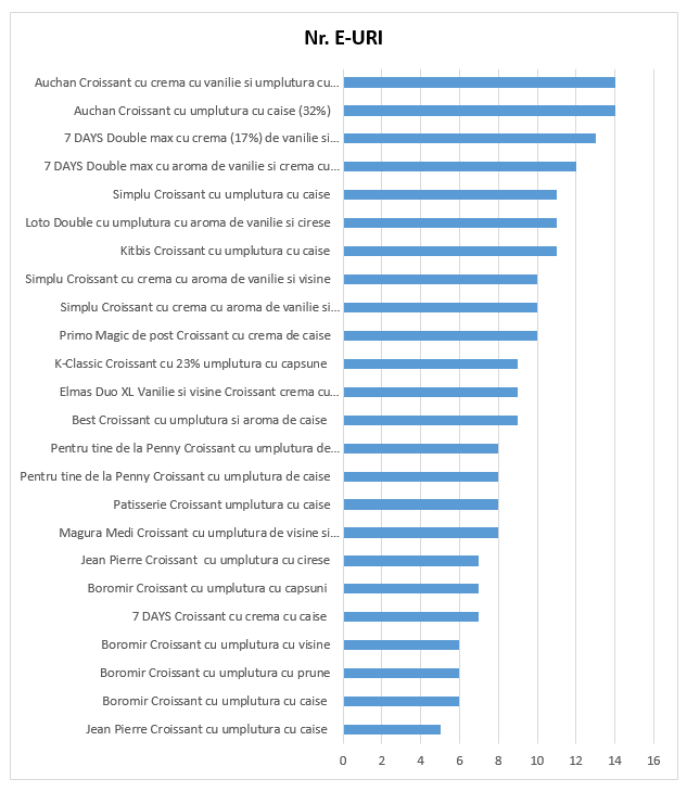 - Din punctul de vedere al aditivilor alimentari regăsiți în croissantul cu cremă sau umplutură de fructe :