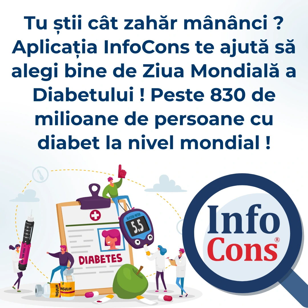 Tu știi cât zahăr mânânci ? Aplicația InfoCons te ajută să alegi bine de Ziua Mondială a Diabetului ! Peste 830 de milioane de persoane cu diabet la nivel mondial !