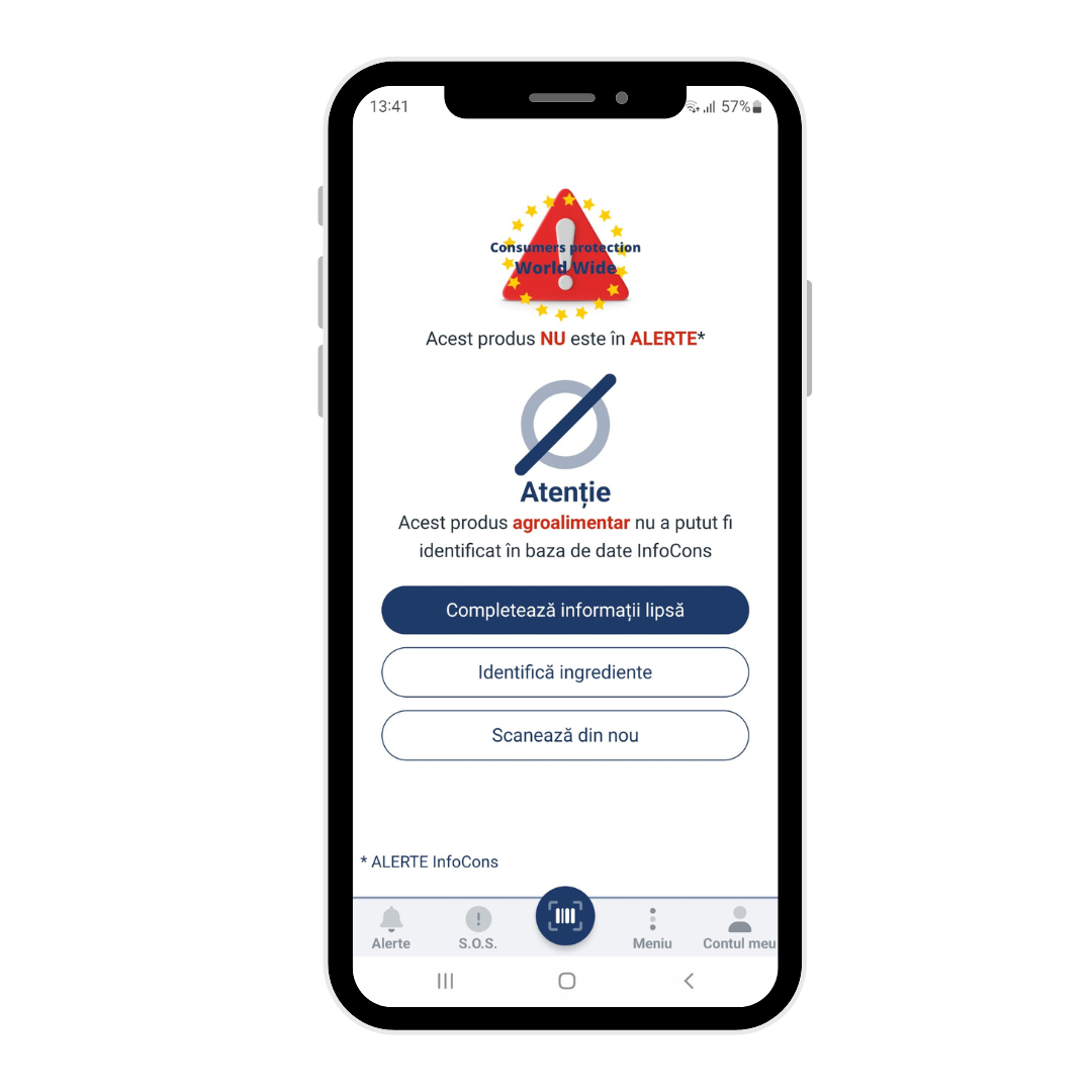 Daca Produsul nu este intr-o ALERTA de neconformitate la momentul cautarii veti vedea pe ecranul telefonului mesajul de mai jos