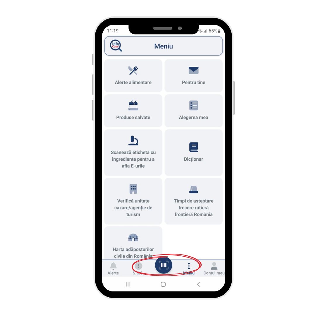 1. In ecranul principal al Aplicatiei InfoCons accesati butonul din mijloc, conform imaginii de mai jos
