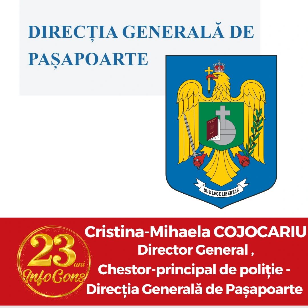 Cristina-Mihaela COJOCARIU – Director General , Chestor-principal de poliție – Direcția Generală de Pașapoarte – 23 de ani InfoCons Protecția Consumatorului